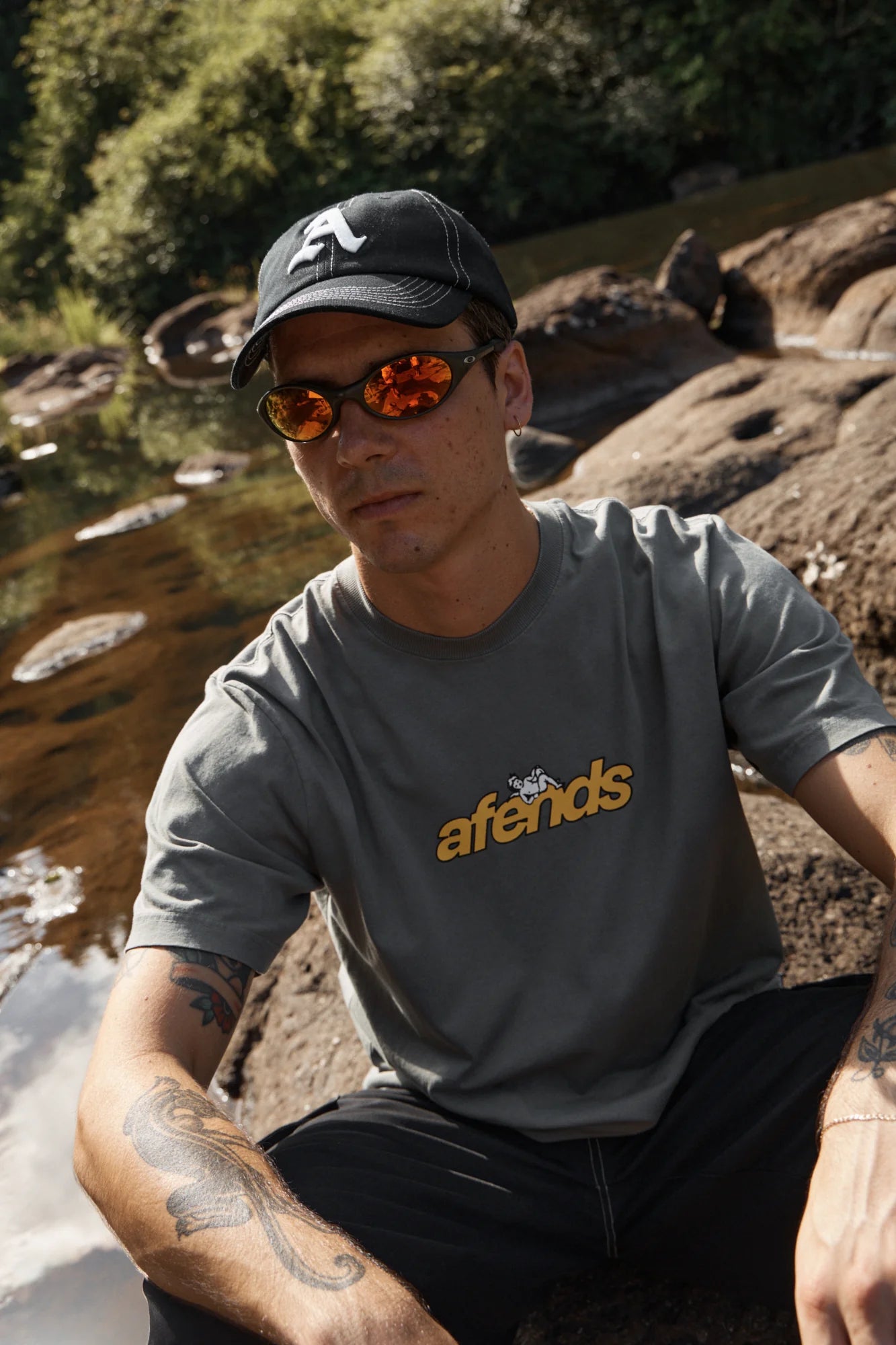 Breno, a long time collaborator and friend of AFENDS, is back. His work has a strong tie to streetwear and skateboarding, so we used his artwork to create a capsule that feels raw - something you could have found in an early 2000s skate shop. A collection that sits naturally within our I Feel Free season. Designed with a retro fit, comfortable ribbed crew neck and printed graphic, this tee is made from a recycled cotton blend dry jersey for a premium hand feel.