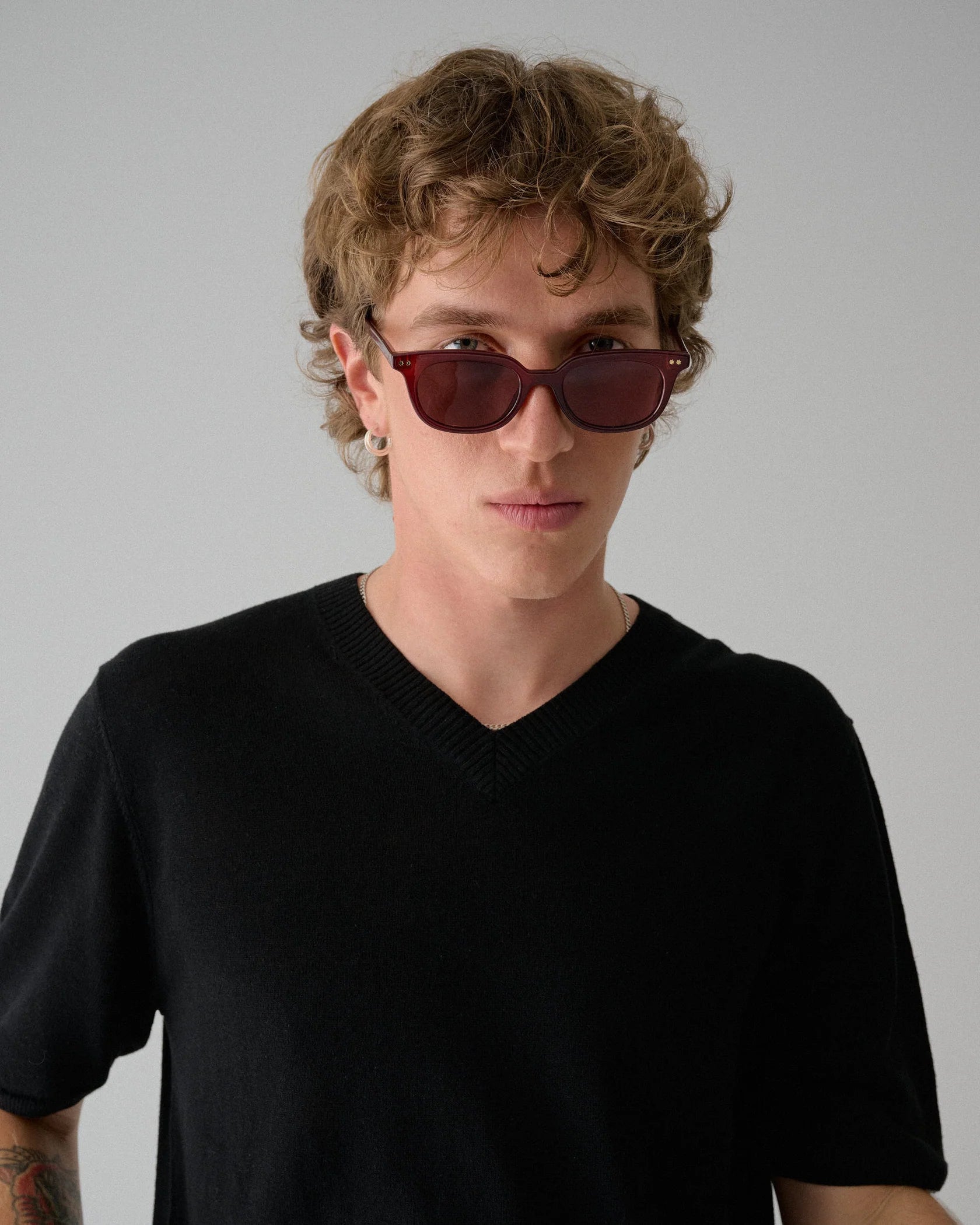 meet bates ; a small, slick rectangular frame with sharp edges and clean lines. this sunglass with takes design cues from the classic wayfarer but with completely modernised proportions. bates is an essential square-rectangle everyday frame to elevate any outift and is flattering to all face shapes.