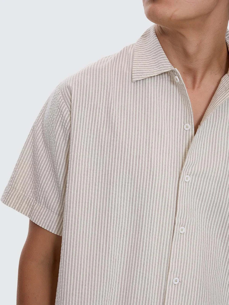 Smart and easygoing, the Beauty Around Us Short Sleeve Stripe Work Shirt in Acorn is a clean update on a timeless staple. Made from 100% cotton yarn dye stripe, it's breathable, lightweight, and designed with enough room for effortless layering or worn buttoned up. The short sleeve cut keeps it casual, while the vertical stripe pattern adds a refined edge that works from street to semi-smart settings. A versatile piece in our men's fashion au collection, it looks right with baggy denims or work pants.