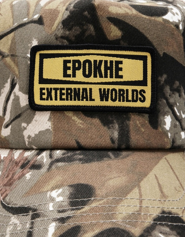 The Driver Cap in Washed Green Real Tree brings the trucker into Epokhe’s world. A cotton–poly twill front with mesh back, snapback closure, and washed finish for a vintage edge.