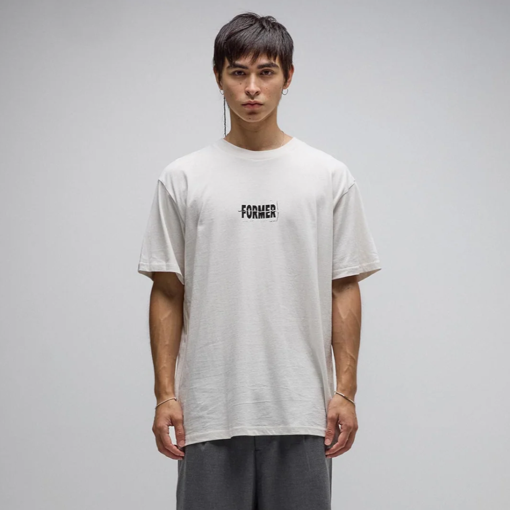 Designed in a premium 200GSM jersey cotton and delivered in our standard T-shirt block for a modern and comfortable fit. Featuring front and back graphics in a combination of cracked print and soft hand plastisol screen print on a clean bone base color.