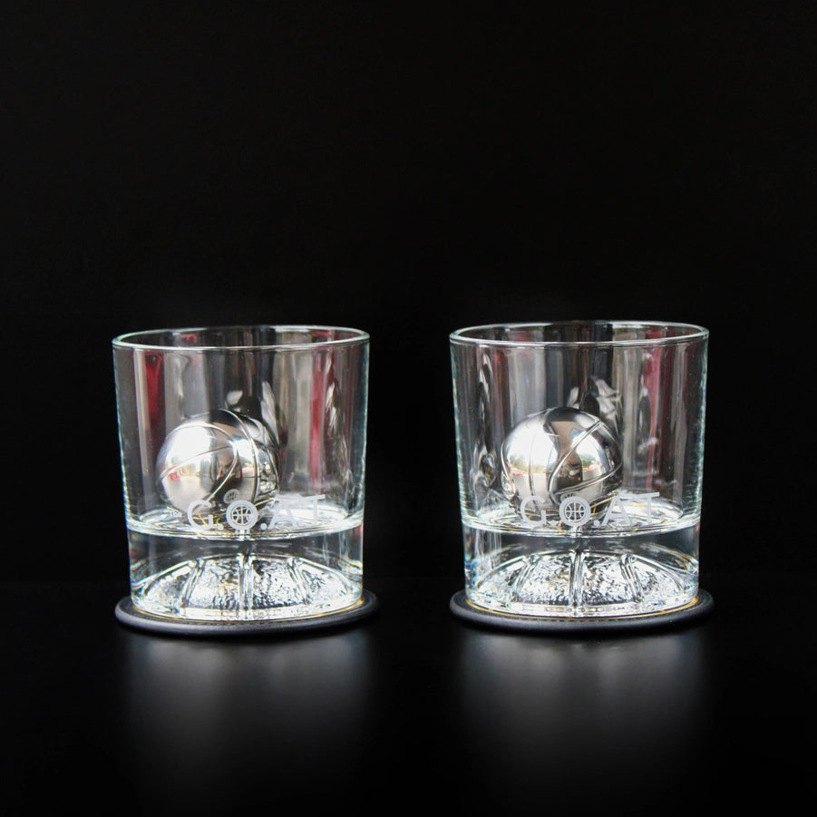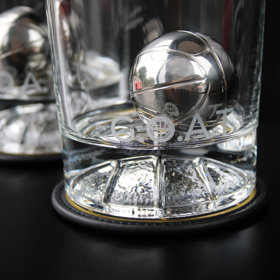 PREMIUM The G.O.A.T. BASKETBALL GIFT SET: This set of 2 basketball-themed whiskey glasses comes with ice balls and coasters for an excellent gift for the sports fan or whiskey lover. TOP-QUALITY GLASSES: Featuring detailed basketball artwork, the set provides a stylish way to enjoy whiskey or bourbon. INCLUDES ACCESSORIES: Also included are 2 stainless steel basketball shaped ice balls to chill your drink without dilution, along with 2 coasters to prevent rings on furniture. EASY TO CLEAN: Dishwasher safe for hassle-free cleaning. The ice balls and coasters are also very durable. GREAT PRESENTATION: This unique set presents whiskey in true fan fashion and makes an outstanding gift for birthdays, holidays, father's day, or any sports celebration, NBA Game nights