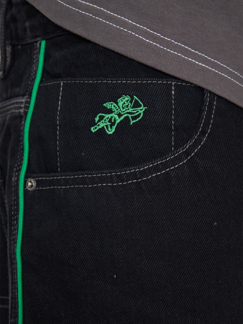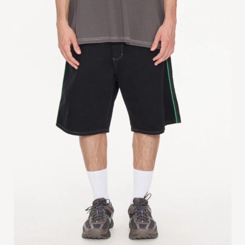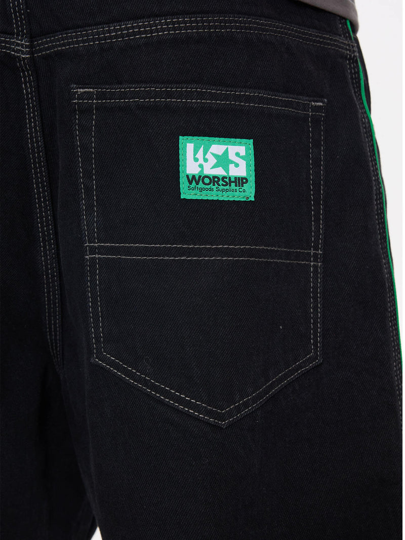 The Grand Prix Big Dawg Jean Short in Worship Black blends a bold, exaggerated silhouette with durability. Cut from heavy-wearing cotton denim blend, these denim shorts au drop feature a longline, baggy fit for a classic streetwear vibe and a traditional 5-pocket design that works across seasons. Available in a washed black finish for a grungy edge with clean stitch detailing to keep it sharp.