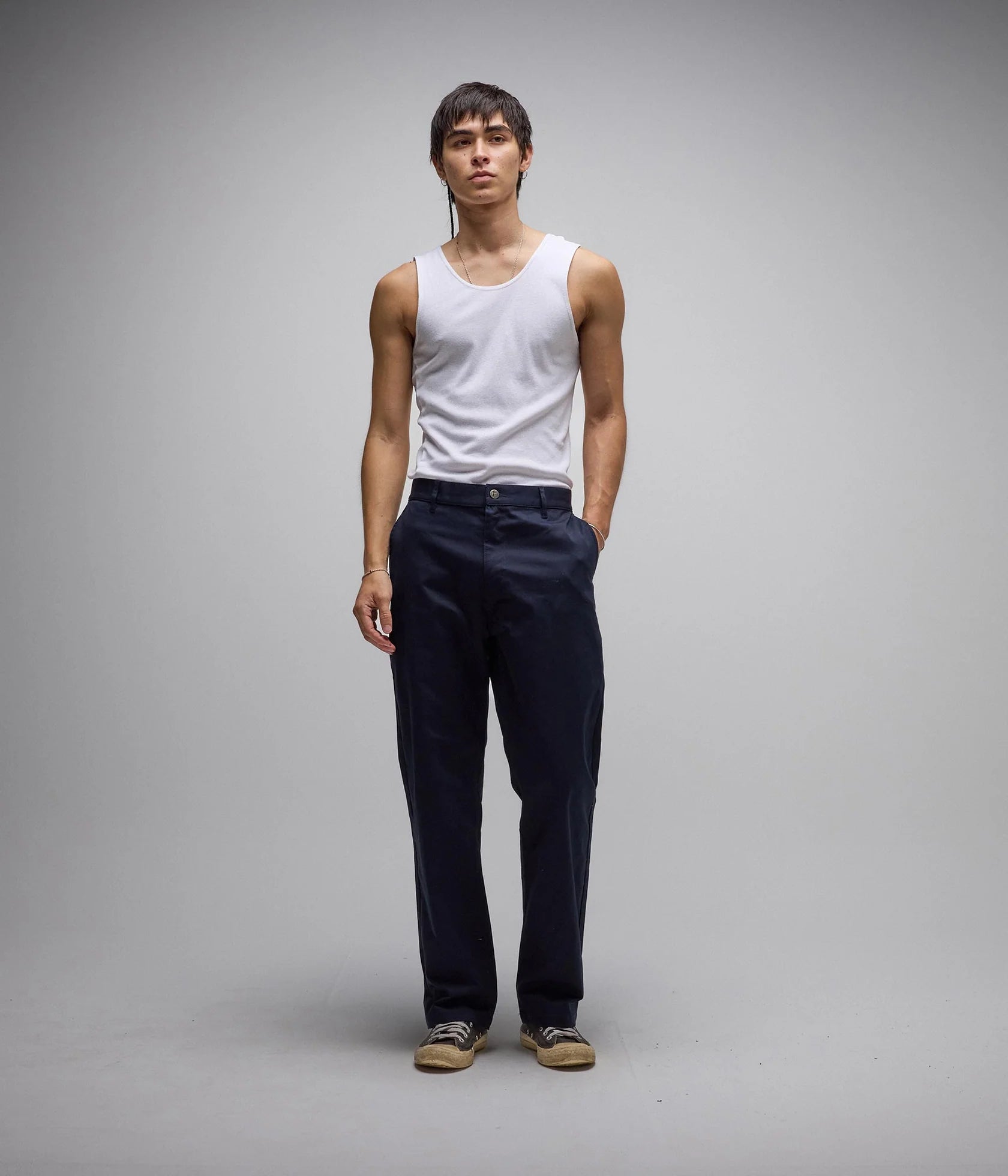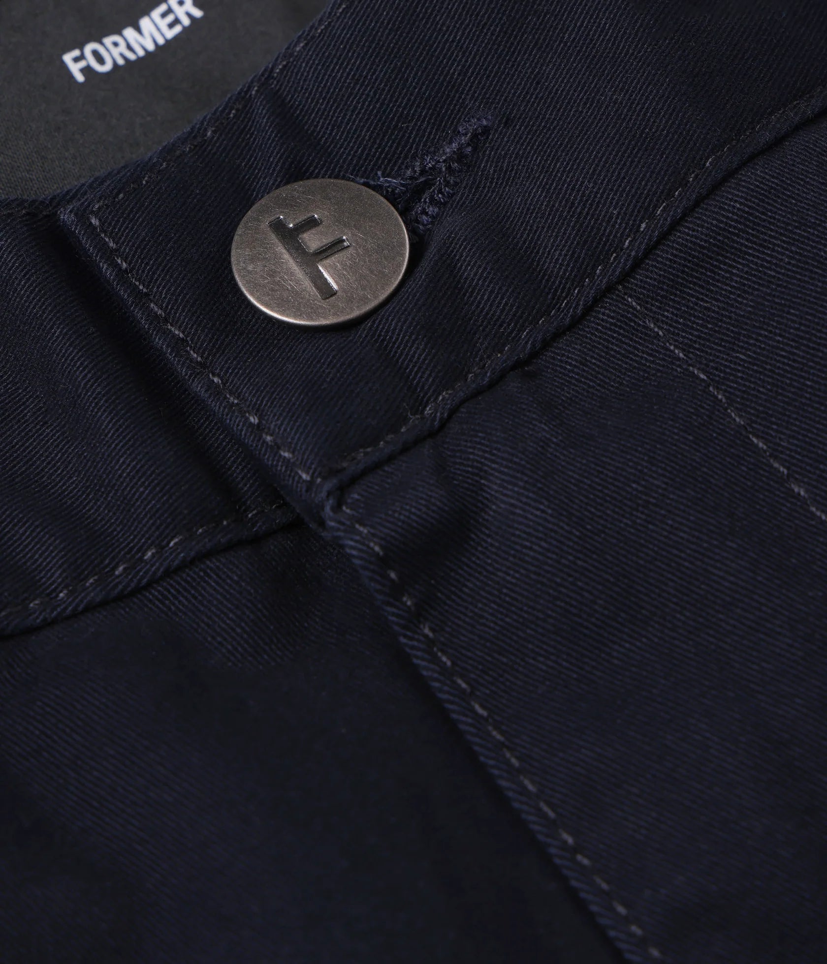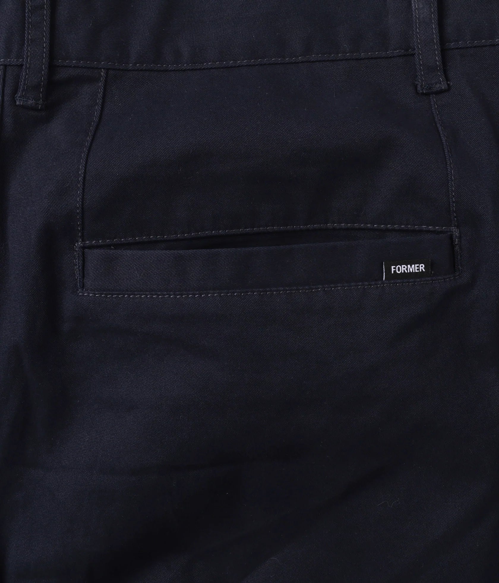 The Legacy Chino is a relaxed fit that falls to a 17" leg opening. Constructed from a premium and soft chino fabric in a cotton blend and featuring a fixed waist, Franchise F logo embroidery on waistband, double welt pockets, woven flag label on back pocket, and FORMER branded metal shank buttons.