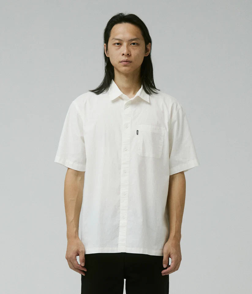 Crafted in a premium cotton-elastine blend (93% cotton 3% elastine) with a slub textured cotton and delivered in our standard former vivian shirt fit. Featuring legacy logo flag label and button closure.