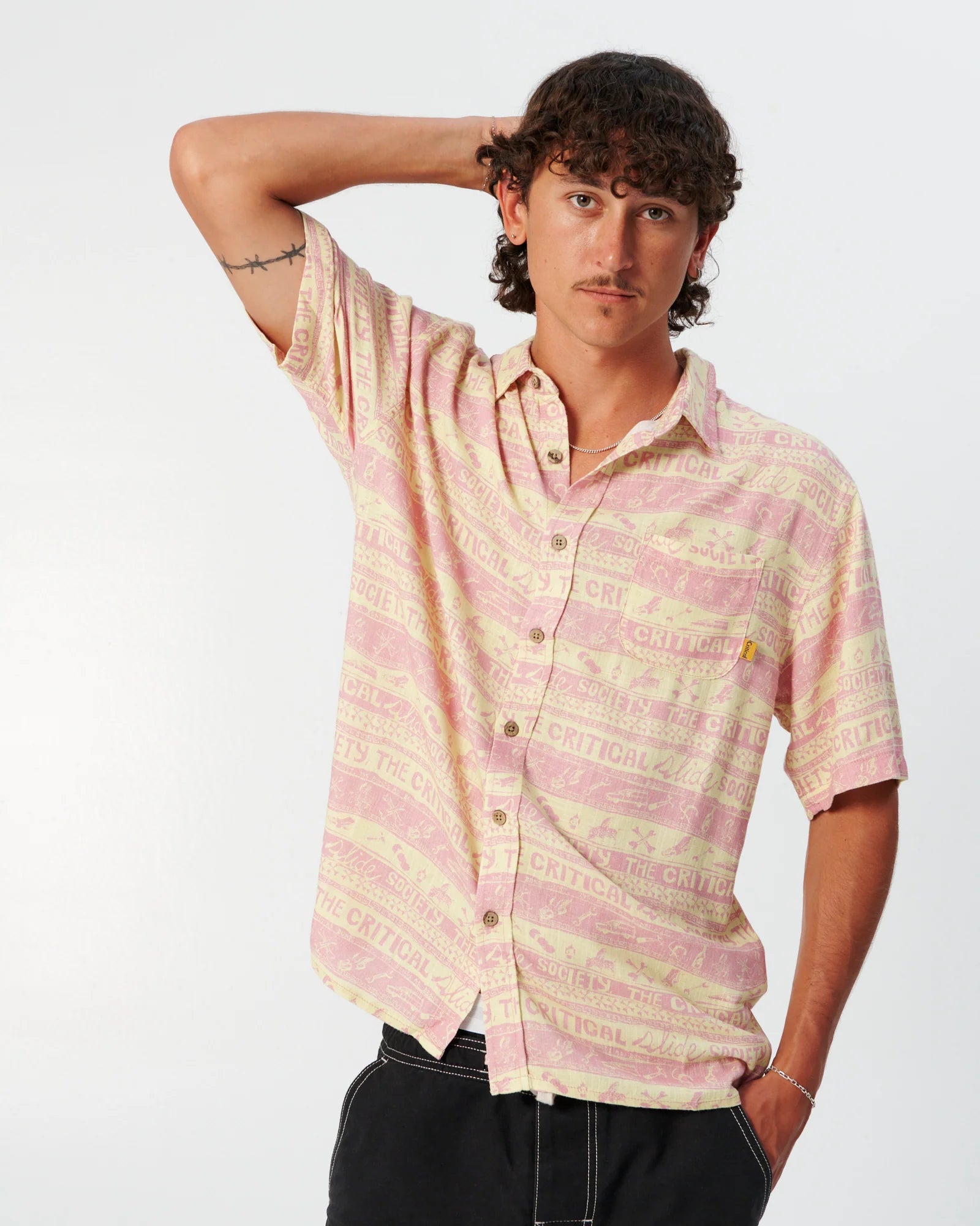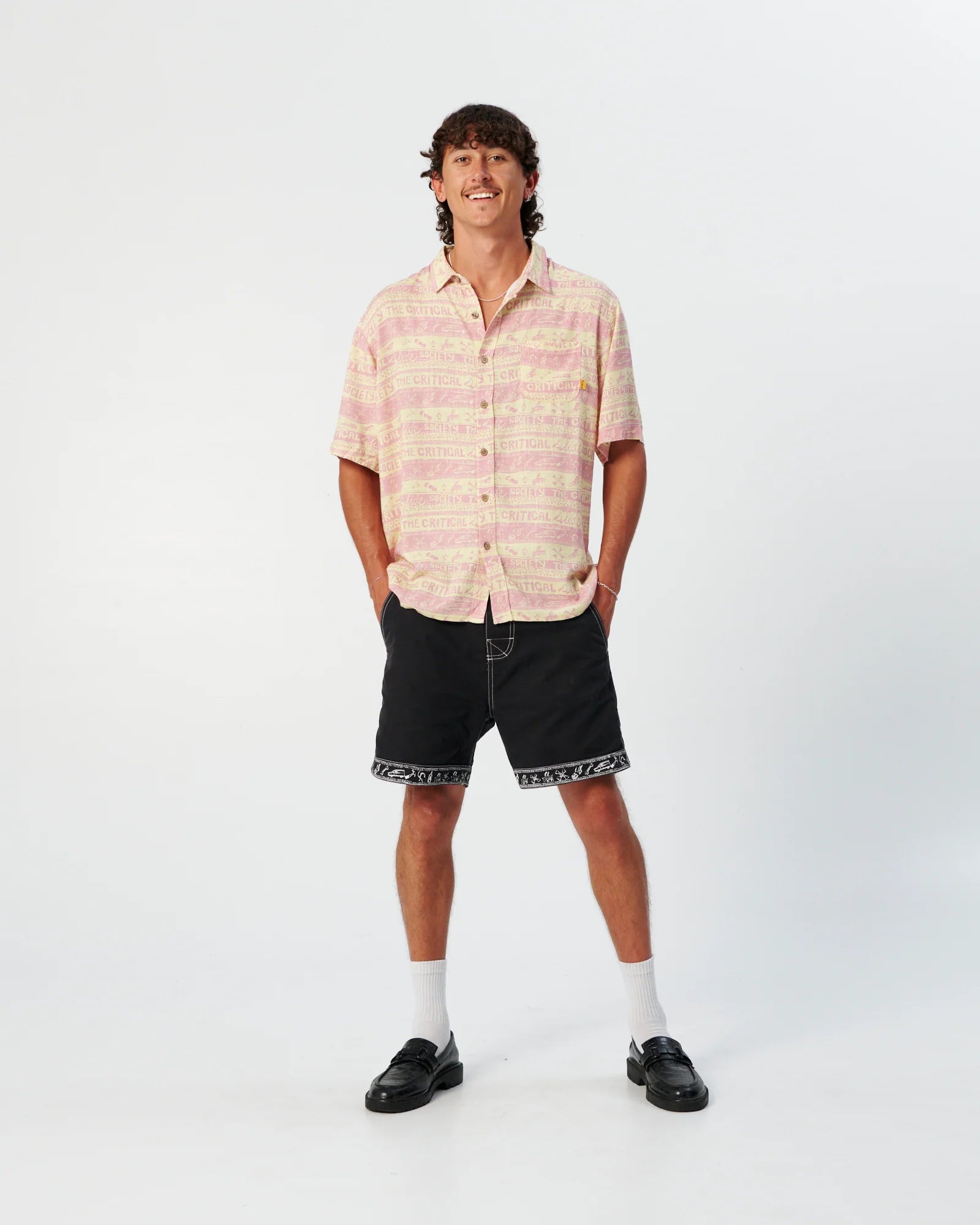 The Myth Shirt is a collaboration with local Australian artist, Gerry Wedd. Made from a printed linen fabric, it's a soft hand feel and features coconut buttons it's a slightly oversize fit. Our guy is 6'2" and wearing a size Large. We recommend taking your regular size.