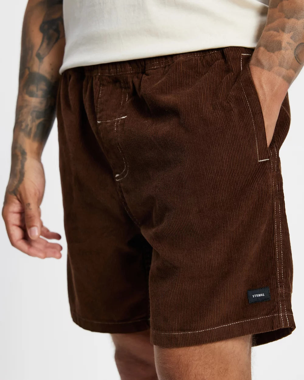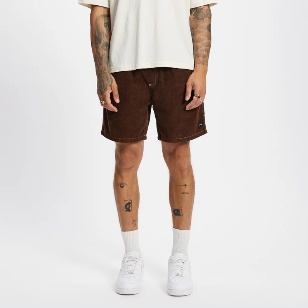 The Paradise Cord Volley in Acorn by Thrills brings a textured twist to your summer shorts. Made from premium cotton cord, they're tactile and comfy, easy to wear for warmer days. With a roomy, relaxed cut, elastic waist, and clean finish The warm Acorn tone adds earthy depth, perfect for styling with oversized tees or short-sleeve shirts.
