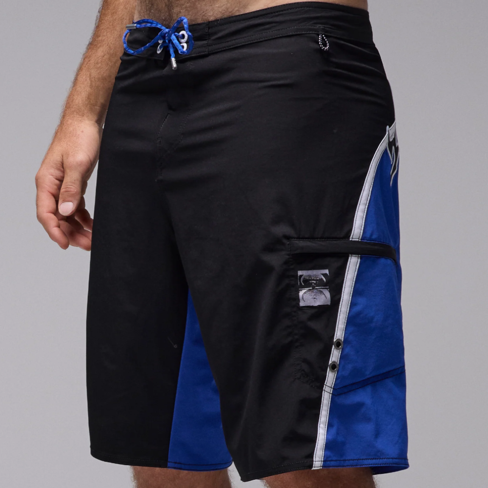 Designed in a premium polyester-spandex blend with 4 way stretch fabric and delivered in our 21" leg length fit. Featuring unique curved panel construction with taping, back applique graphic, side zip pocket, secure drawcord closure and comfortable fixed waist.