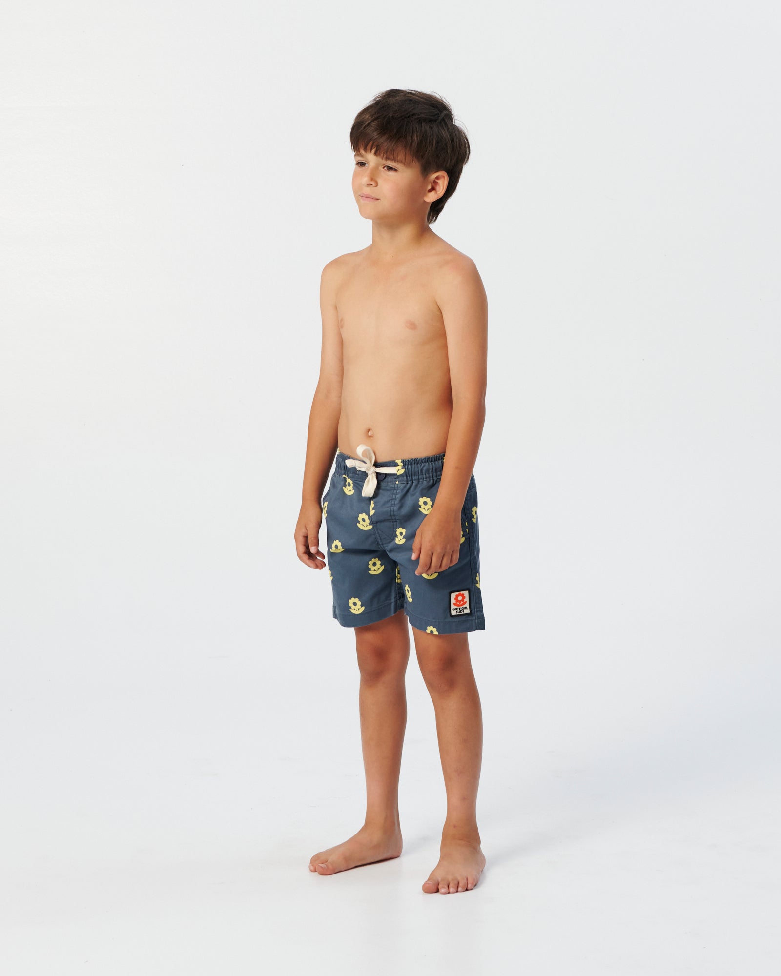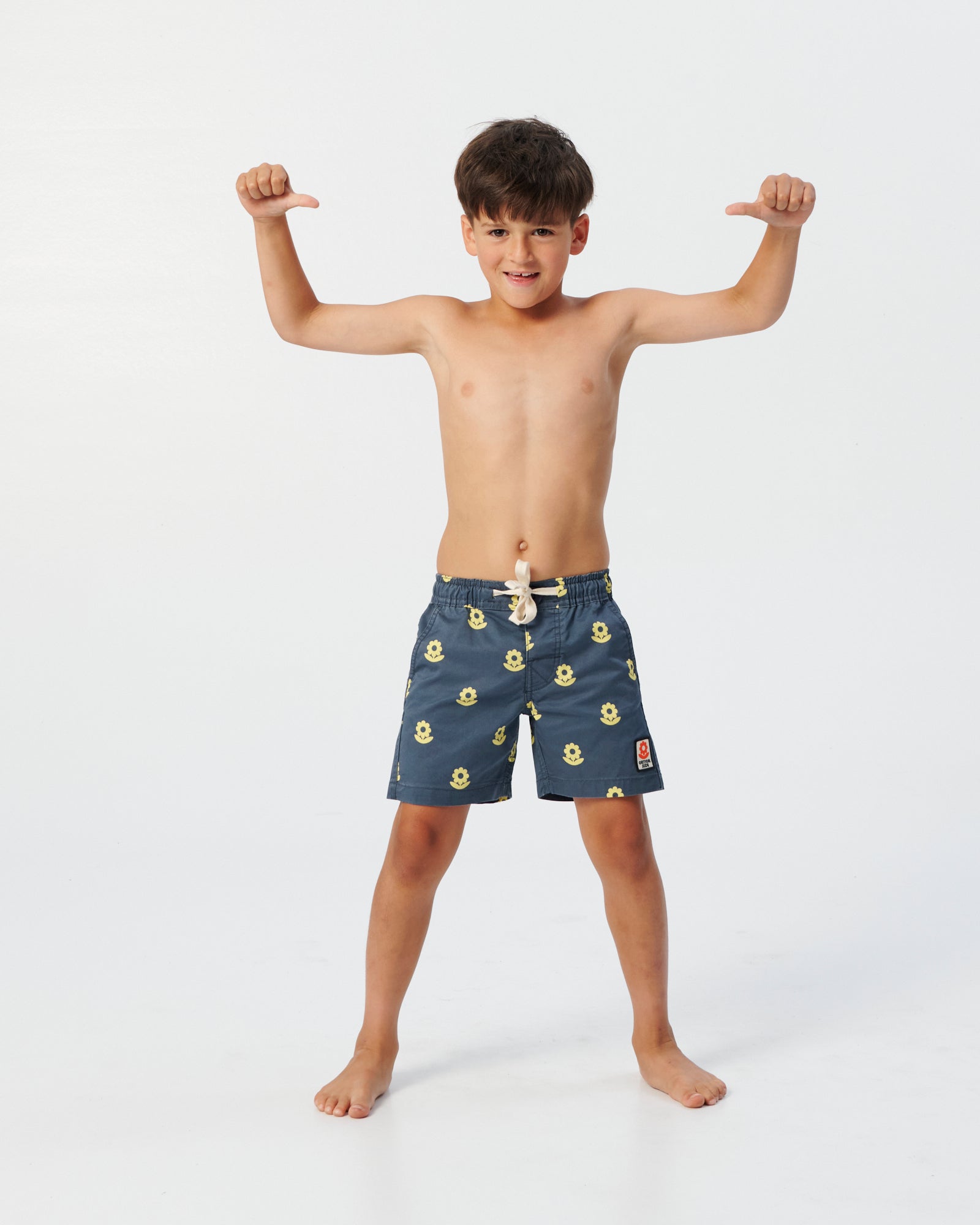 The Sunflower kids trunk is an elastic waist boardshort. Built for the water. Made from a Poly/Cotton stretch fabric. The fit is true to size. Our model is 6 years old and is wearing a size 6.