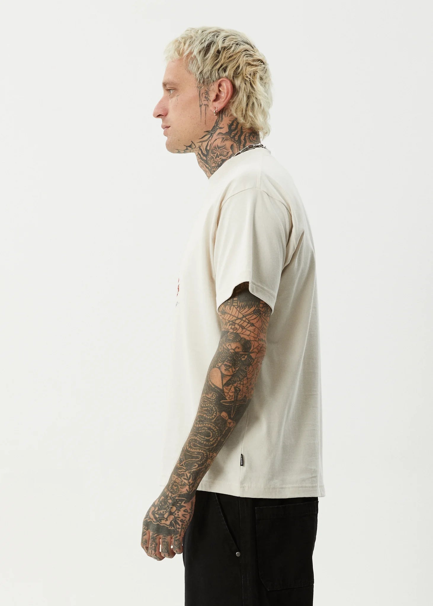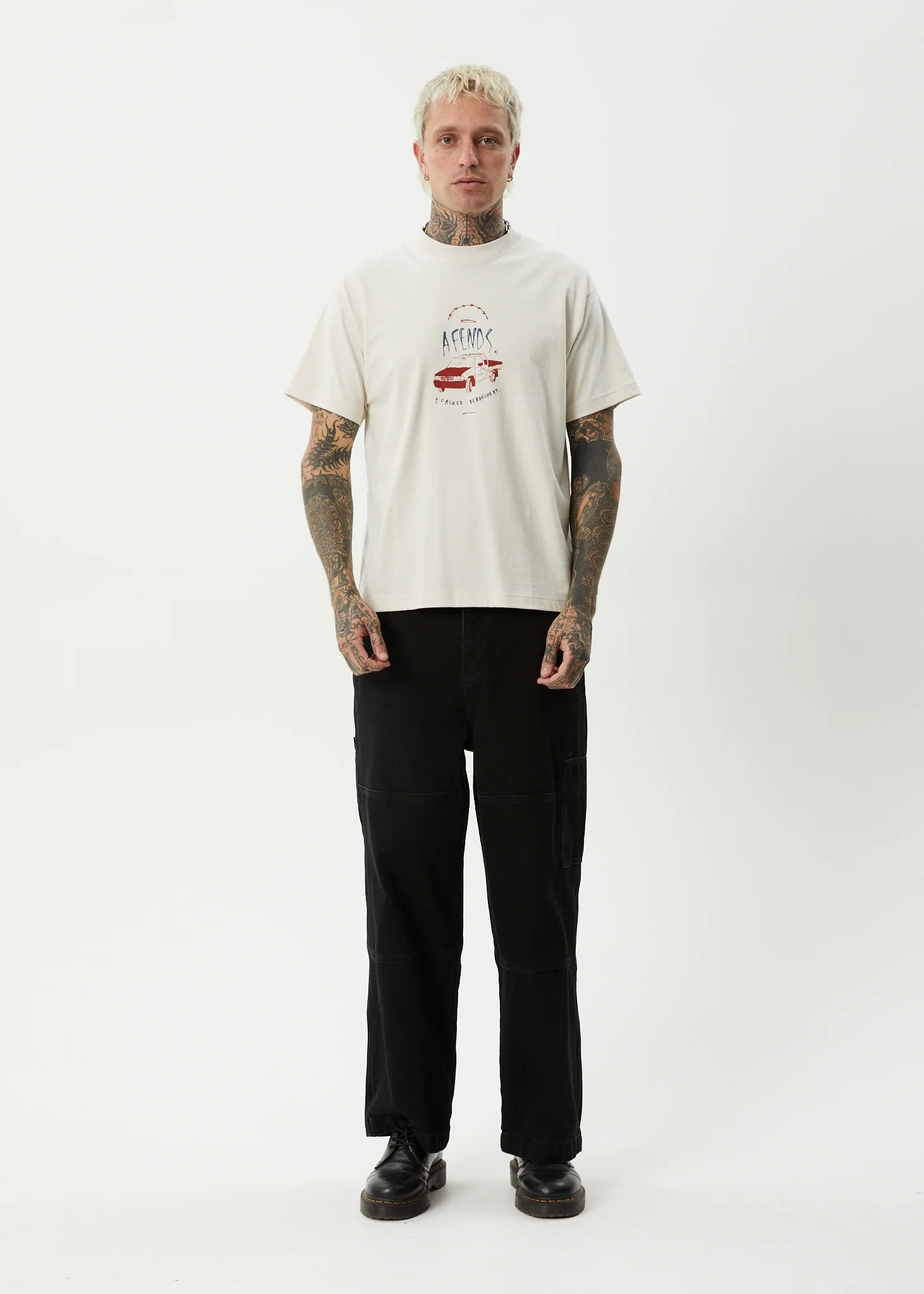 A continuation of our collaboration with Tokes, showcasing his signature style in this season’s collection. The 'Trayback' boxy tee is designed with a slightly cropped, wider fit and ribbed crew neckline, made from a recycled cotton blend jersey with a premium dry hand feel. Finished with a mix of water based print and embroidery for a layered, textured look.